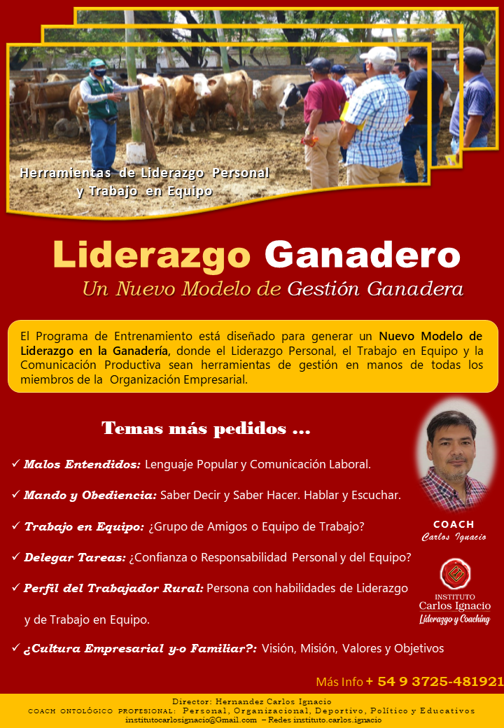 Liderazgo: El Programa de Entrenamiento está diseñado para generar una Nuevo Modelo de Gestión y Liderazgo Personal y de Equipos de Trabajo a los fines de atender a las necesidades y desafíos planteado por el Sector Ganadero y las Empresas en particular.